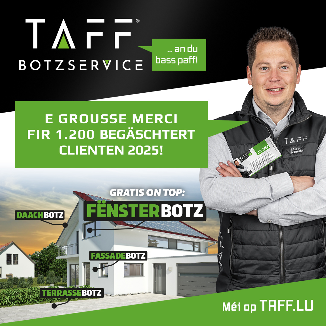 TAFF hat sich als bevorzugter Partner der Luxemburger in Sachen professioneller Reinigung etabliert. Das für die Qualität seiner Dienstleistungen bekannte Unternehmen bietet passende und langlebige Reinigungslösungen für verschiedene Oberflächen und garantiert so einwandfreie Sauberkeit und Langzeitschutz.